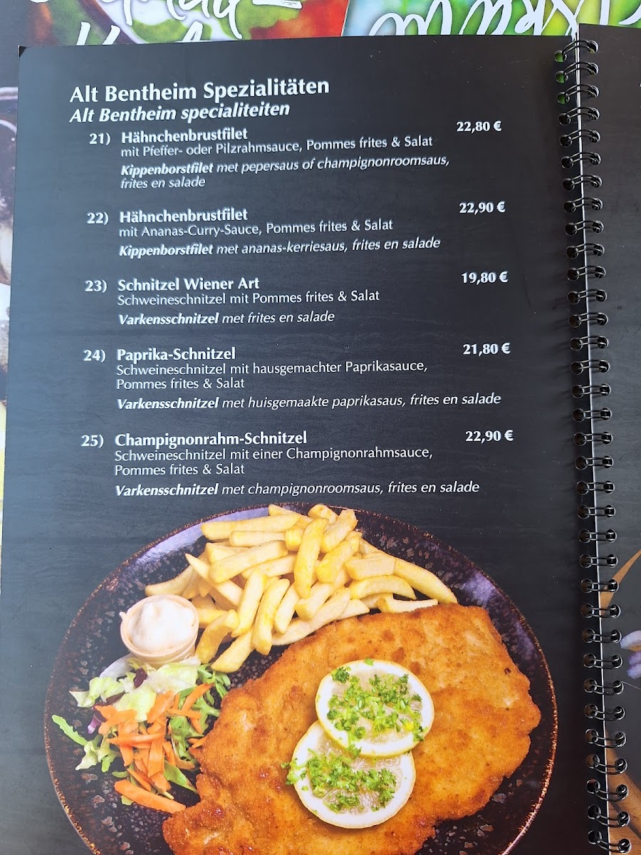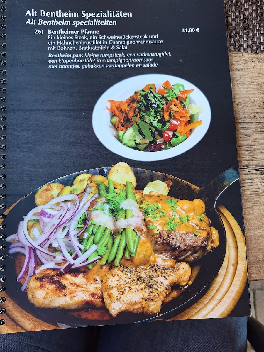 The menu at Alt Bentheim offers a straightforward and hearty selection, typical of a traditional German Gasthof. You can expect comforting dishes that make for satisfying lunches or relaxed dinners, served in a cozy setting with a view of the nearby castle. The focus is on generous portions of authentic, familiar flavors that invite you to take your time and enjoy the moment.